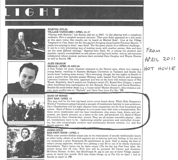 Band of Bones' "Musical contributions filled the sanctuary like never before, and helped to make the program one of the best we have ever had!" - Jo Jackson, co-ordinator,Flatted Fifth Jazz Vespers in Newark, NJ